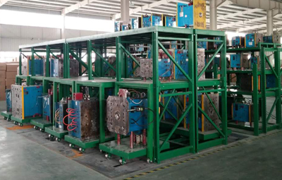 抽屜式貨架主要用于存放各類模具,該貨架除頂層外,其余各層都可拉出,以便于行車吊運。抽屜板底部設有滾輪軌道,抽屜板承載后仍能自由的拉動。 滾輪軌道是用模具一體成型,精度極高,有極高裝配精度,所以滾輪使用壽命大大延長并且使用時拉出或推入很省力。